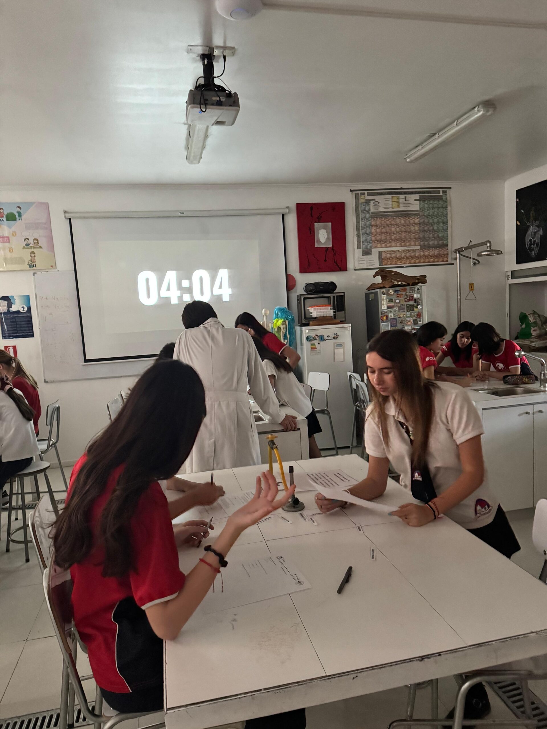 Las estudiantes de I Medio participaron en una innovadora experiencia pedagógica en el laboratorio, un Escape Room interdisciplinario que integró contenidos de Filosofía, Física y Química en un solo gran desafío.
